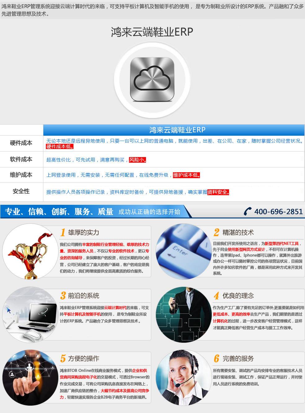 東莞市南城鴻來軟件服務部,我們主要提供制鞋行業及其上下游廠商提供各項信息及咨詢服務廠商 。鴻來軟件在制鞋業軟件方面先后替上百家客戶,完成計算機化規劃,經過長期的用心經營,公司已經建立了龐大的客戶基礎,獲得眾多客戶支持及肯定。...